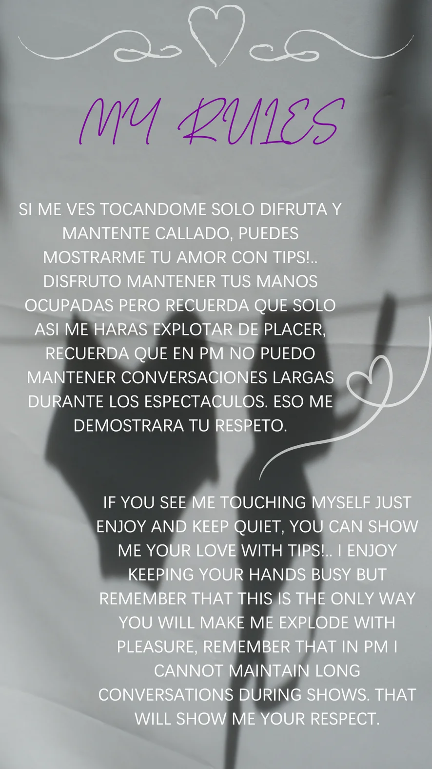 Rules 🌻All the things I do are in my tip menu.🌻 🌻Do not insist if they have not given a tip for what you want to 🌻 🌻be kind all the time🌻 🌻I do not hold personal meetings of any kind.🌻